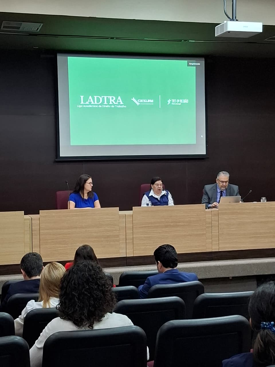 A Associação dos Magistrados da Justiça do Trabalho da 8ª Região (AMATRA 8) participou, nesta sexta-feira (12/12), do I Simpósio de Direito do Trabalho da Liga Acadêmica de Direito do Trabalho (LADTRA), realizado no Tribunal Regional do Trabalho da 8ª Região. O evento reuniu magistrados, professores, estudantes e profissionais do Direito para debater o tema “Sustentabilidade, direitos sociais e o futuro das relações de trabalho”, em sintonia com os desafios contemporâneos das transformações econômicas, tecnológicas e sociais.