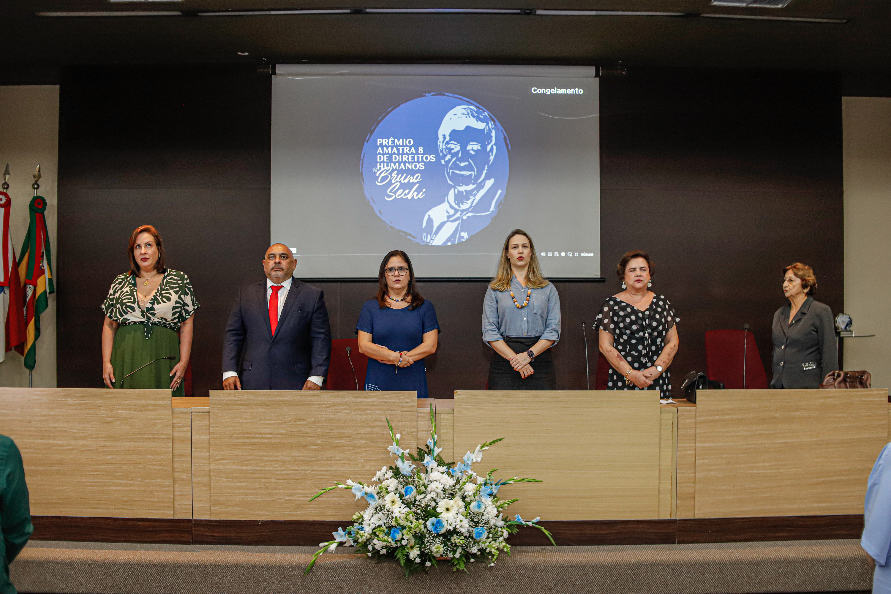 Neste dia 10/12, dia internacional dos Direitos Humanos, a Associação dos Magistrados da Justiça do Trabalho da 8ª Região – AMATRA 8, realizou a cerimônia de entrega do Prêmio AMATRA 8 de Direitos Humanos – Padre Bruno Sechi, edição 2024. O reconhecimento é uma forma de valorizar e incentivar iniciativas e práticas de defesa dos direitos humanos nas relações de trabalho sob a coordenação de coletivos e membros da sociedade civil organizada. Ao todo, foram quatro vencedores em quatro diferentes categorias. O evento ocorreu no auditório do Tribunal Regional do Trabalho da 8ª Região, em Belém.