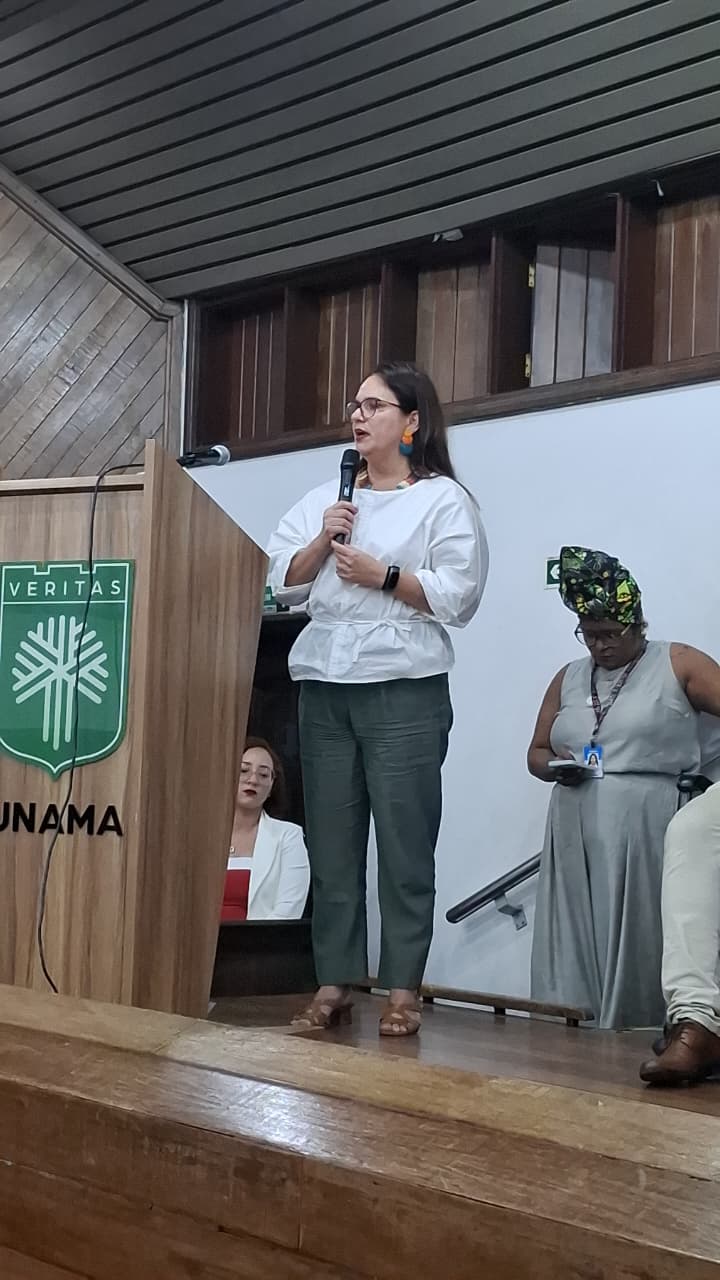 A presidente da AMATRA8, Natasha Schneider, compôs a mesa de honra e destacou a importância de o seminário entrar para o calendário oficial do Estado. Durante sua fala, reafirmou o compromisso da Associação com a Comissão Estadual de Erradicação do Trabalho Escravo, e ressaltou a participação da AMATRA 8 na articulação para a efetivação tanto da comissão como para a criação do Fundo do Trabalho Decente (FUNTRAD).