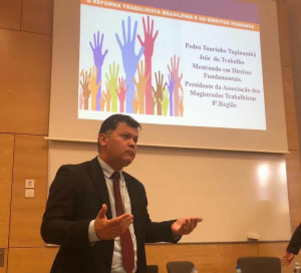 No último dia do evento, Pedro Tupinambá ministrou palestra sobre A Reforma Trabalhista Brasileira e os Direitos Humanos. “Na relação jurídica de trabalho o foco principal deve ser o Homem e não o trabalho ou a máquina, por isso não se pode tratar a questão como meramente econômica. É o homem quem dignifica o trabalho e não o trabalho que dignifica o homem. Em seu contexto geral, com raras exceções, as novas regras da Legislação Trabalhista Brasileira procuraram contrariar essa lógica em prejuízo à dignidade humana do trabalhador”, ressaltou o magistrado durante sua conferência.